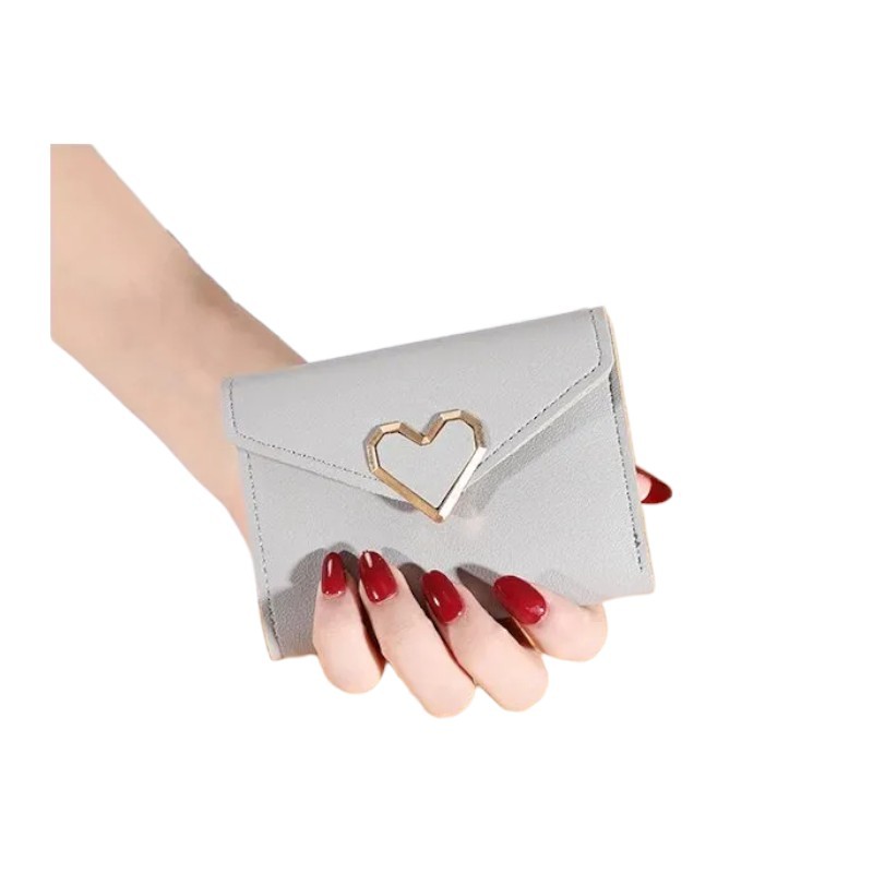 Tämä naisten mini avattava lompakko on suunniteltu naisille, jotka etsivät käytännöllistä lisävarustetta kompakteissa mitoissa ja haluavat samalla säilyttää tyylikkään ilmeen. Mitoiltaan 9 x 2 x 12 cm se mahtuu helposti käsilaukkuun, reppuun tai pienempään crossbody-laukkuun. Lompakko on valmistettu keinonahasta, joka näyttää sileältä ja on miellyttävä koskettaa. Avattava muotoilu mahdollistaa nopean pääsyn sisältöön ilman turhaa etsimistä. Tyylikäs yksityiskohta sydämen muodossa etupuolella antaa lompakolle hienostuneen ja naisellisen luonteen.