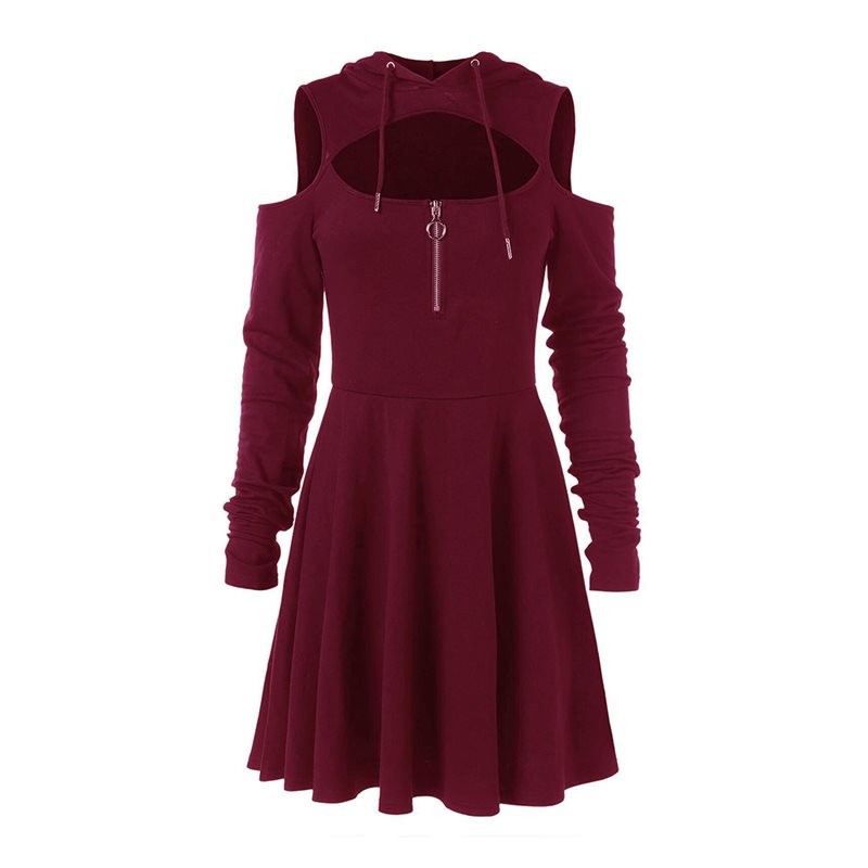 Naisten minimekko, jossa leikkaukset olkapäillä. Pitkät hihat ja näyttävä kaula-aukko.