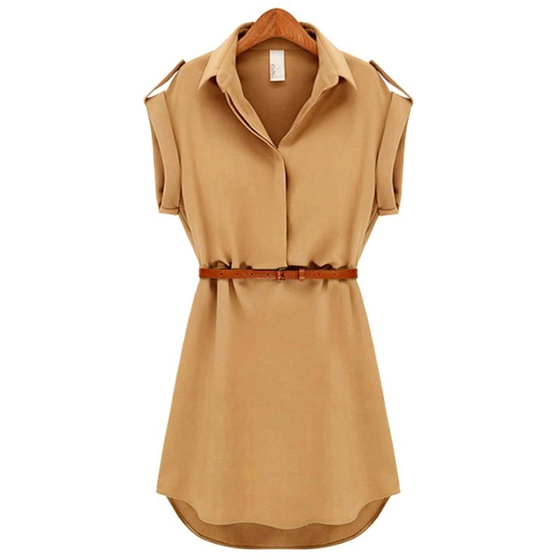 Vapaa-ajan naisten sifonkimekko, jossa on paitaleikkaus ja vyö.