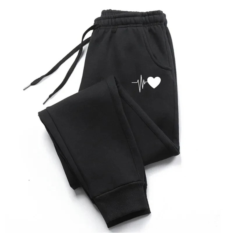 Naisten mukavat väljät collegehousut sydänkuviolla Rento ja pehmeä housut kotiin ja ulkoiluun Mukavat urheiluhousut joustavalla vyötäröllä