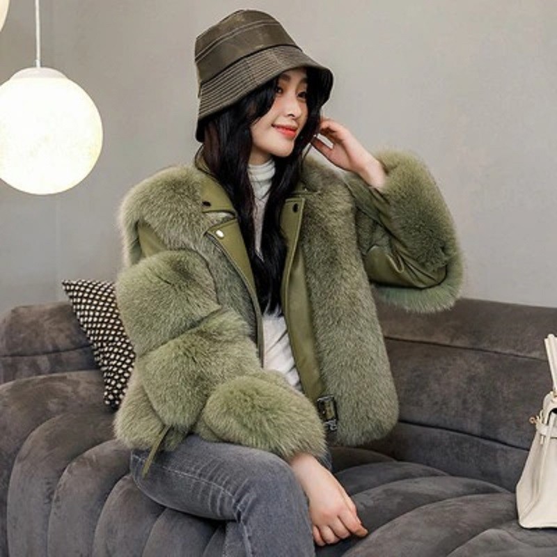 Naisten nahkatakki turkisreunuksella