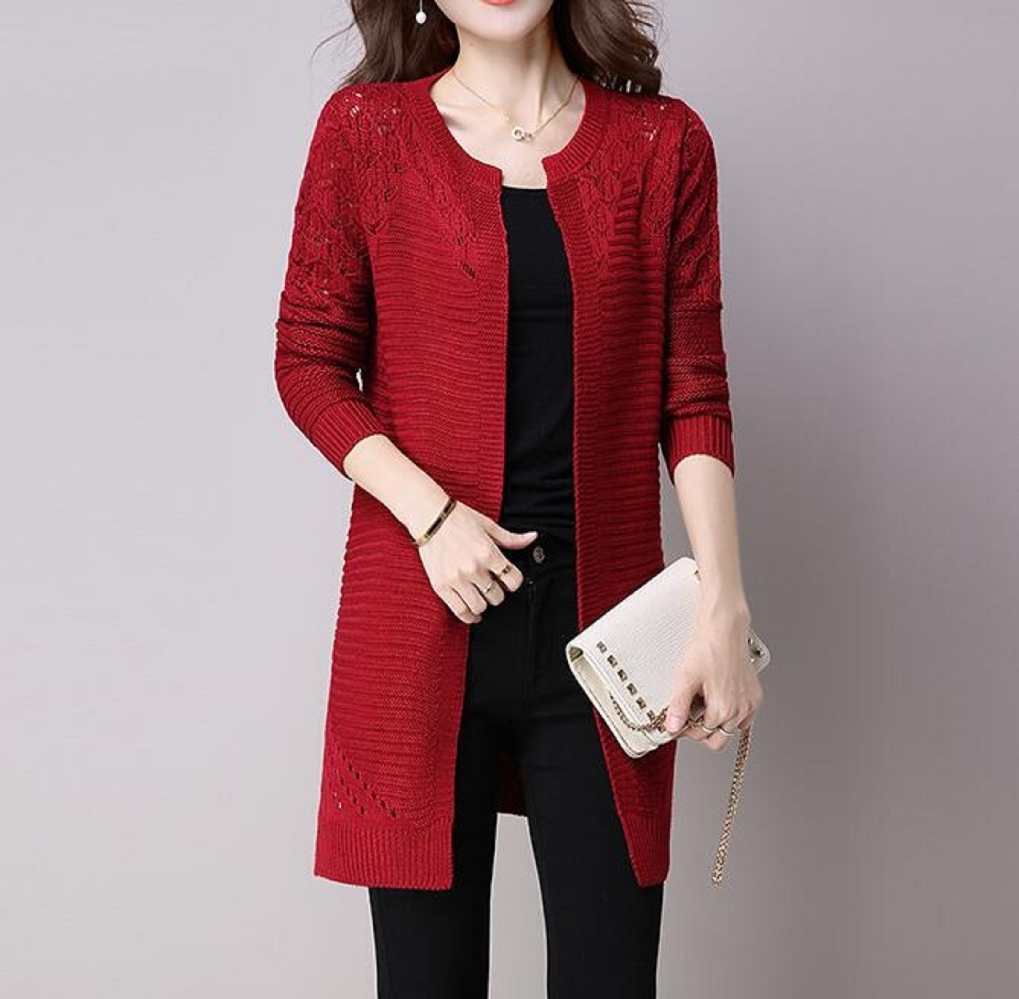 Naisten neulottu neuletakki