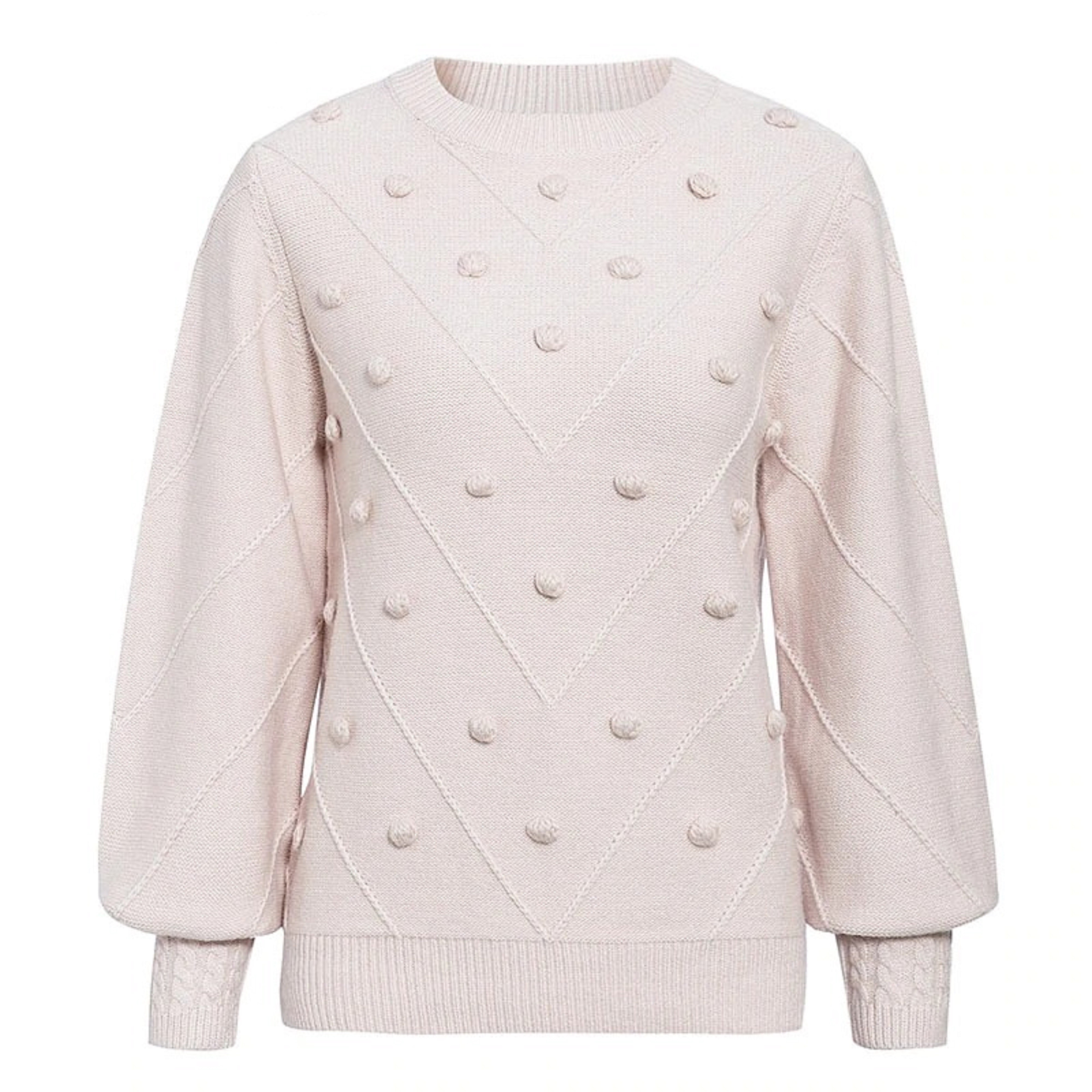Naisten neulottu neulepusero tupsuilla G354