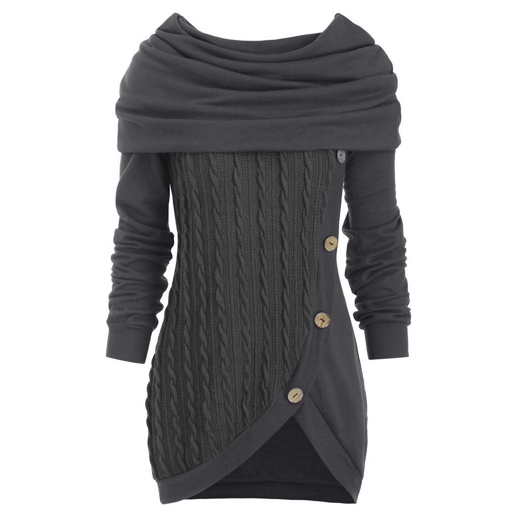 Naisten pitkä neulepusero napeilla