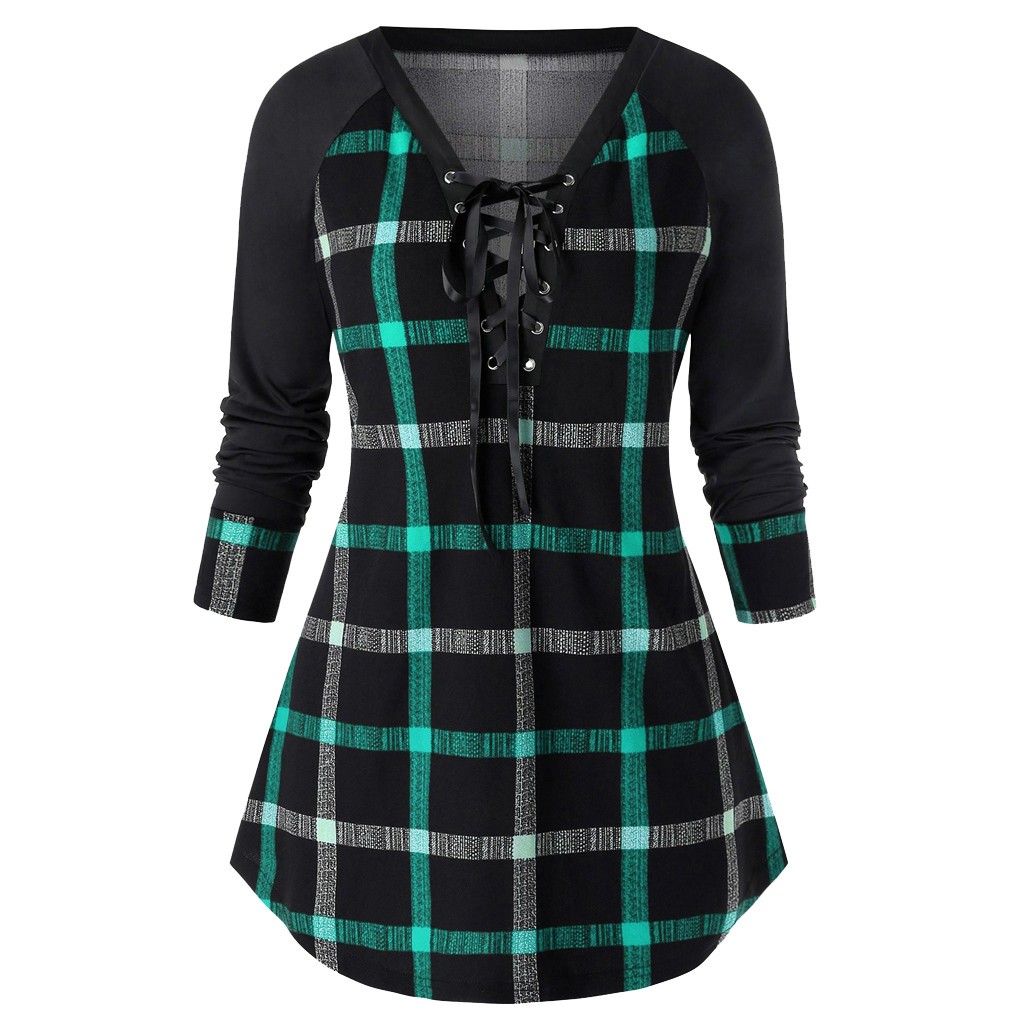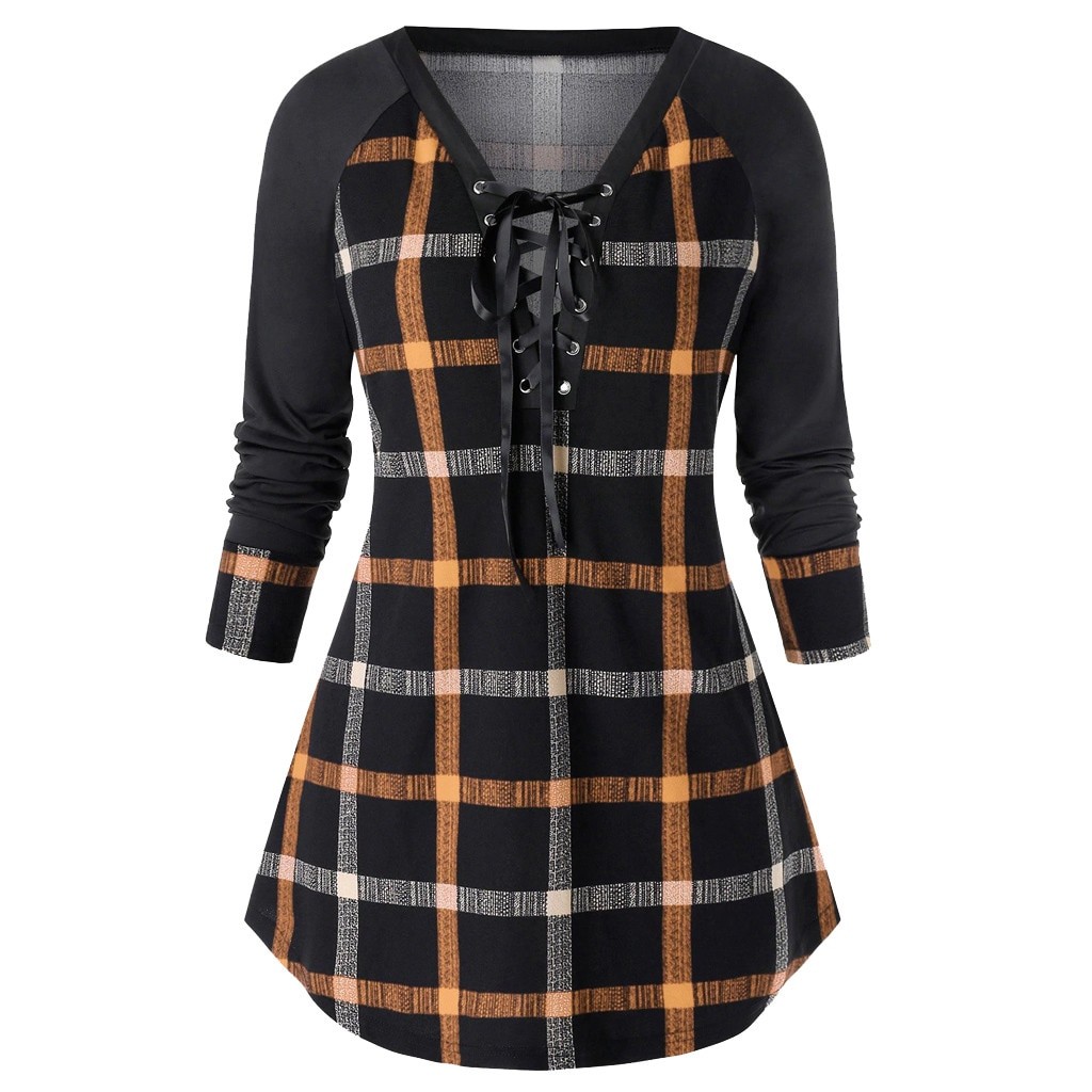 Naisten pitkä ruutukuvioinen toppi