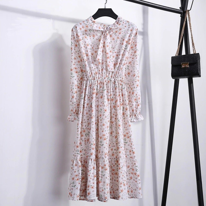 Ilmava sifonkimekko imartelevalla leikkauksella.