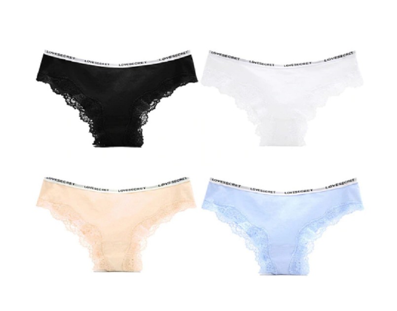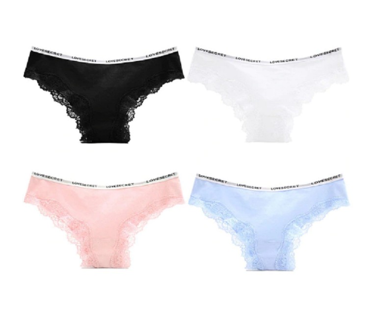 Alushousut on koristeltu pitsillä ja niissä on kumireunus.