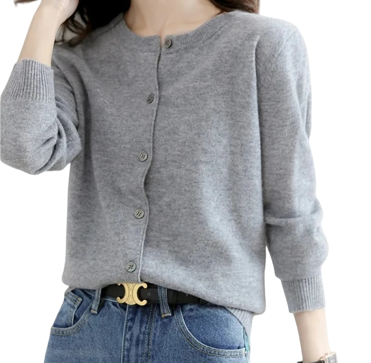 Tämä tyylikäs ja käytännöllinen kardigan on ihanteellinen valinta naisille, jotka arvostavat yksinkertaista mutta samalla hienostunutta tyyliä. Korkealaatuinen polyesterimateriaali tarjoaa erinomaisen mukavuuden ja pitkän käyttöiän, kun taas napitus lisää toimivuutta ja mahdollistaa helpon mukauttamisen. Yksivärinen muotoilu takaa monikäyttöisyyden ja helpon yhdistettävyyden muiden vaatekappaleiden kanssa. Yksi koko varmistaa, että kardigan mukautuu mukavasti vartaloon ja näyttää hyvältä jokaisella naisella. Hienostunut O-kaula-aukko tuo esiin elegantin ja ajattoman ilmeen – täydellinen lisä työpaikalle, kävelylle tai vapaa-aikaan.