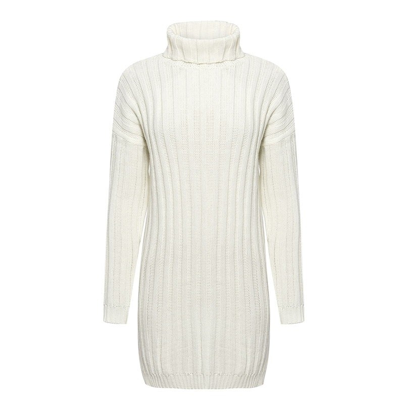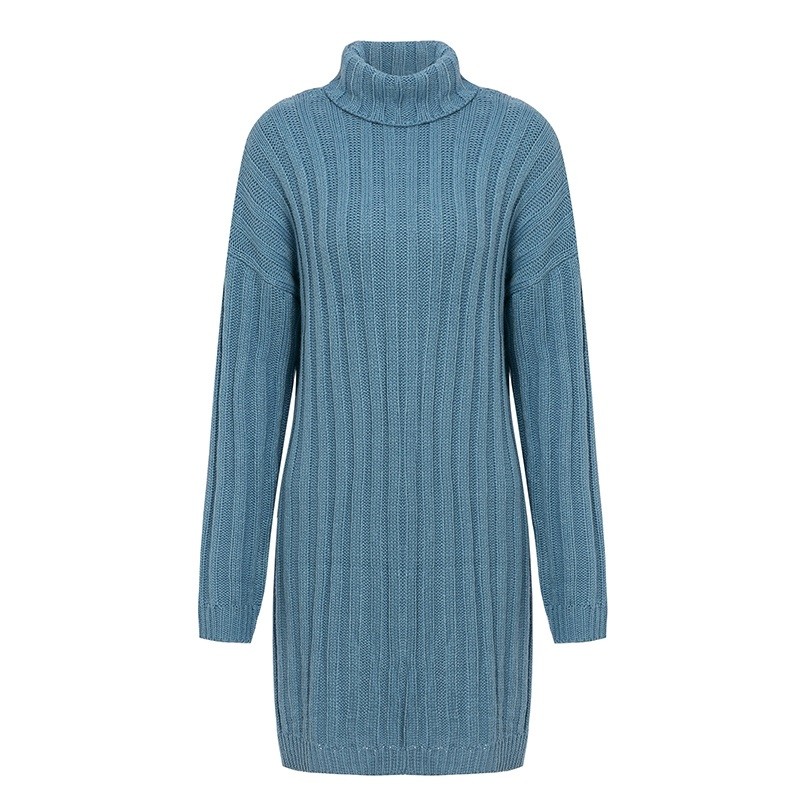 Lämpimämpi neulottu poolomekko pitkähihaisella kauluksella.
