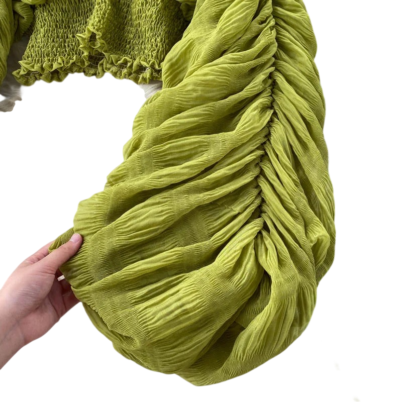 • Pitkät hihat hienolla rypytyksellä keveyden ja tyylin vuoksi