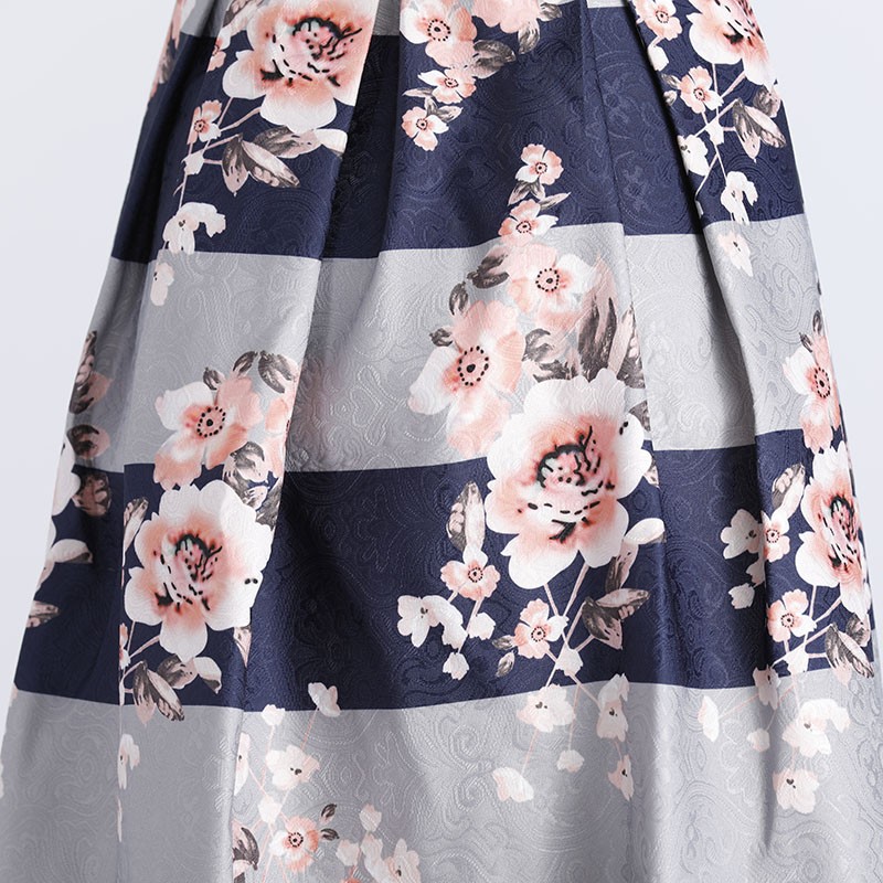 Ole söpö tässä raidallisessa ja kukkaisessa hameessa.