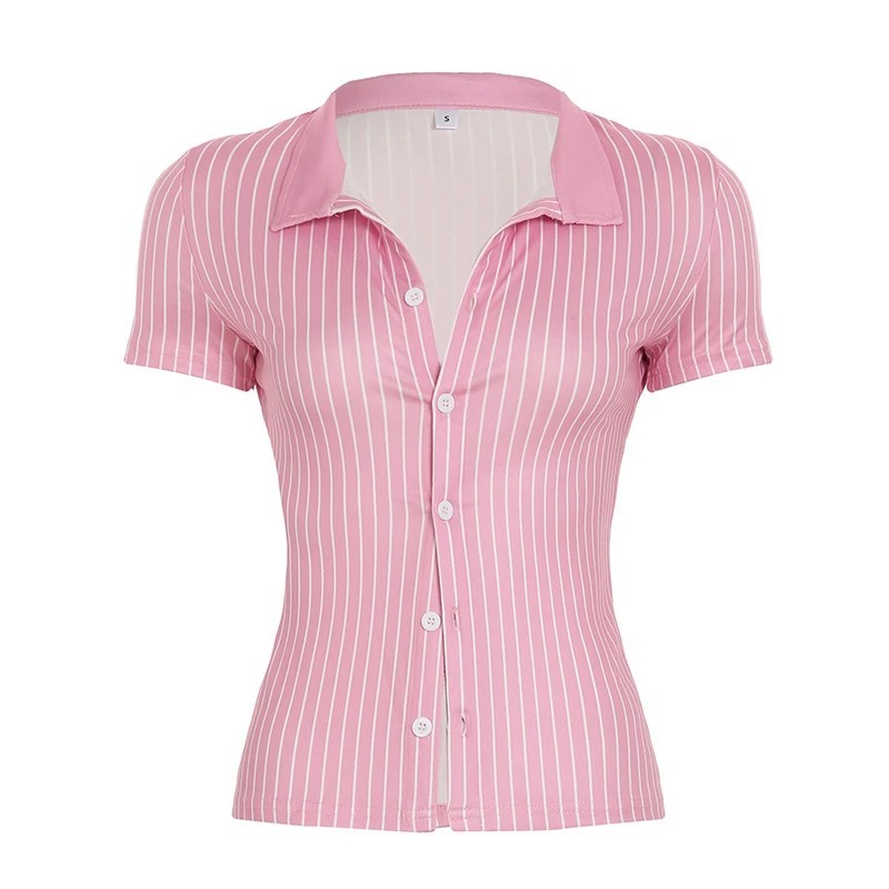 Naisten raidallinen lyhythihainen paita Elegantti crop-pusero napeilla Tyylikäs istuva kesäpaita Rento vyötäröltä yltävä toppi
