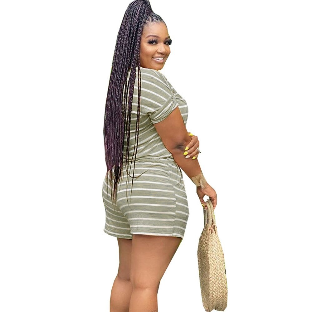 Naisten raidallinen toppi ja shortsit