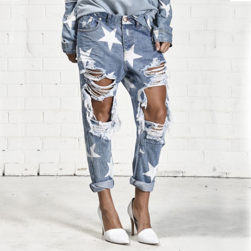 Naisten revityt farkut tähdillä