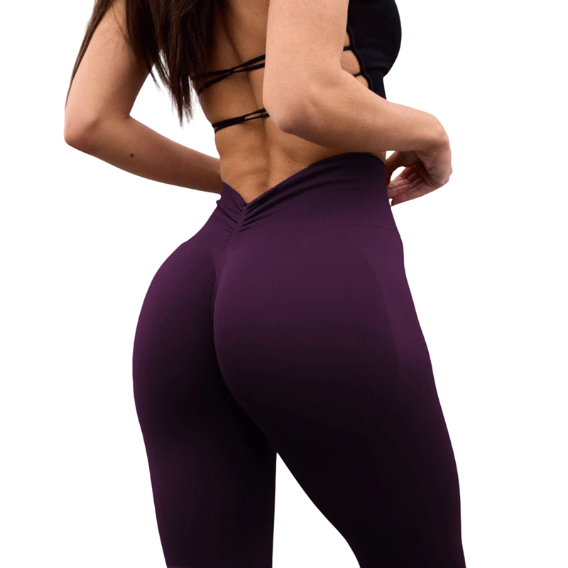 Naisten saumattomat korkeavyötäröiset urheilulegginsit, joissa on V-leikkaus vatsan päällä, joustavat kuntohousut joogaharjoitteluun ja punnerrukseen