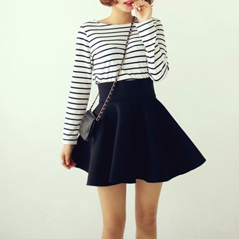 Naisten seksikäs korkeavyötäröinen hame - Musta