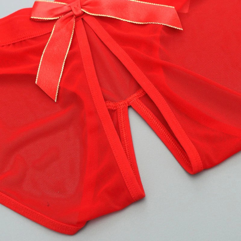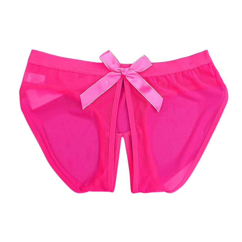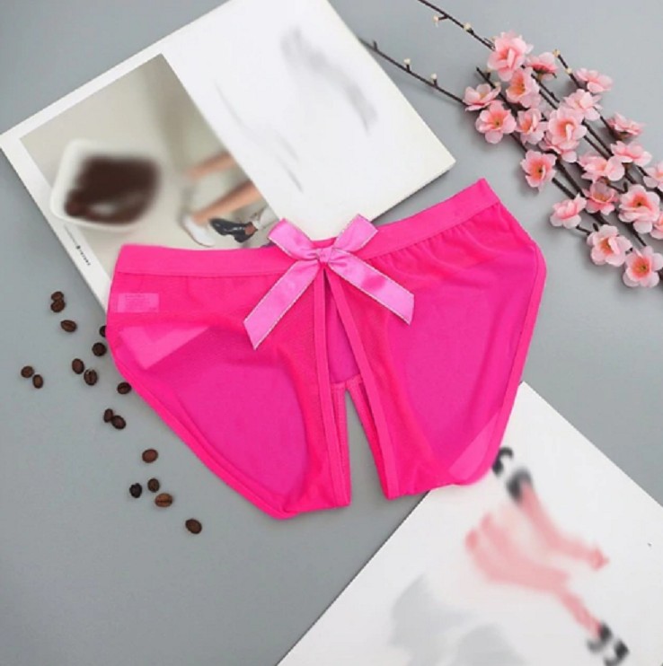 Alushousuissa on reikä keskellä ja ylähelma on koristeltu ruseteilla.