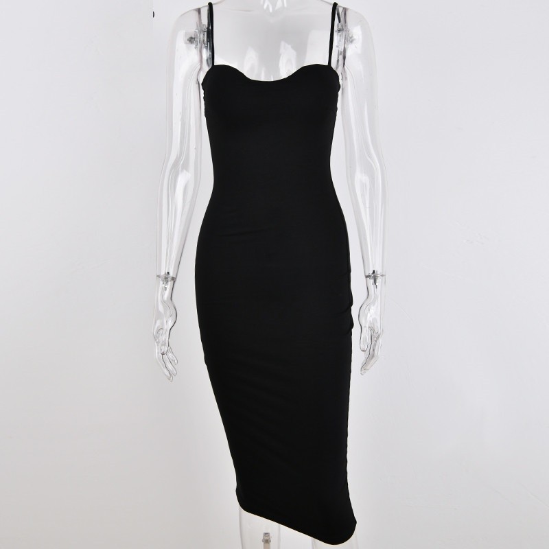 Tyylikäs juhlamekko, jossa on ohuet olkaimet.