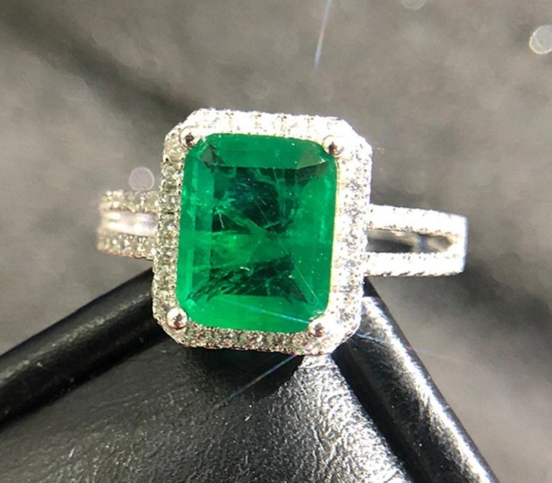 Materiaali: pukukorumetalli, smaragdinjäljitelmä, sinisen turmaliinin jäljitelmä