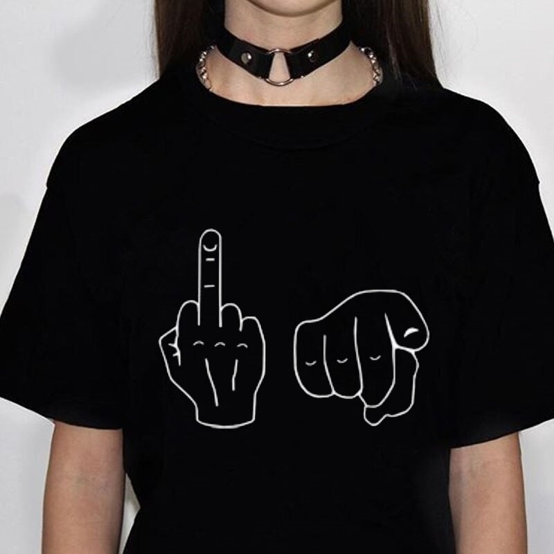 Naisten t-paita hauskalla käsinpainatuksella
