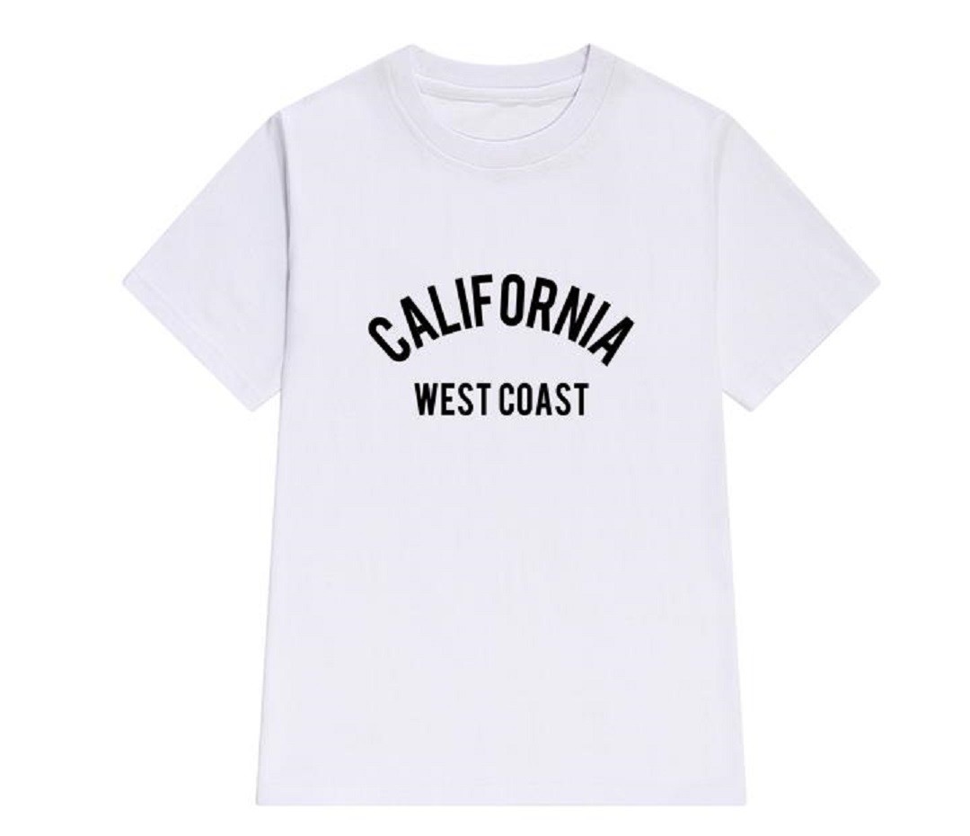 Naisten T-paita, jossa on CALIFORNIA-teksti