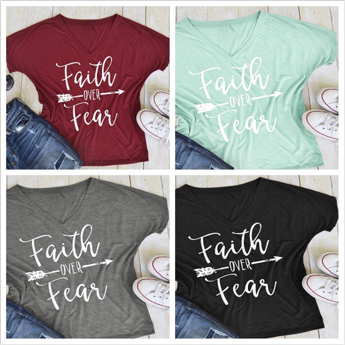 Naisten T-paita, jossa on Faith Over Fear -painatus J2424