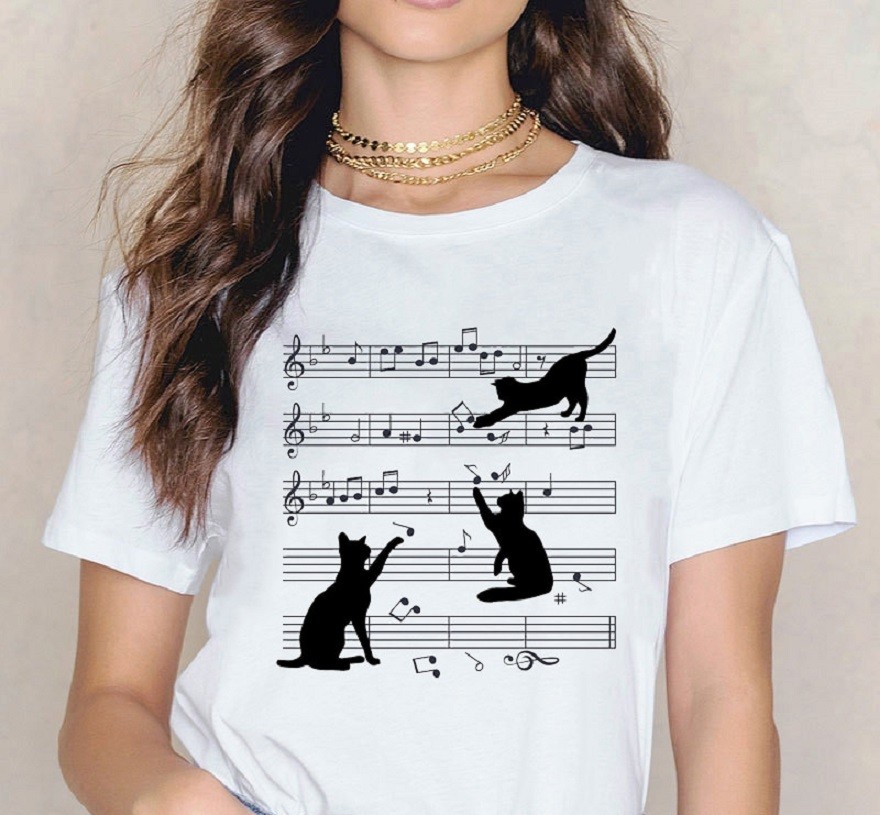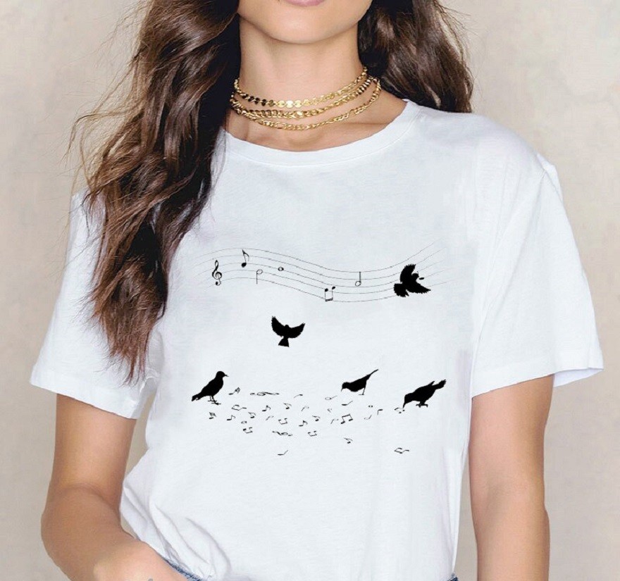 Naisten T-paita, jossa on musiikkiaihe