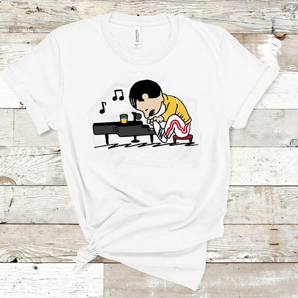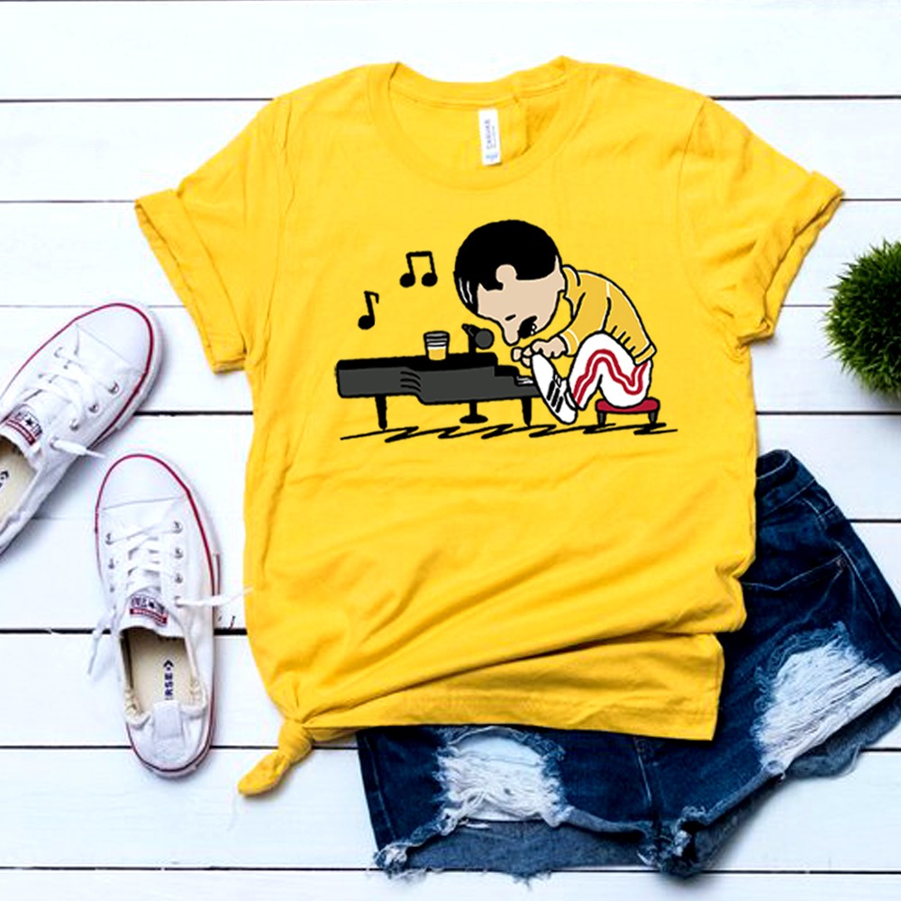 Naisten T-paita, jossa pianokuvio
