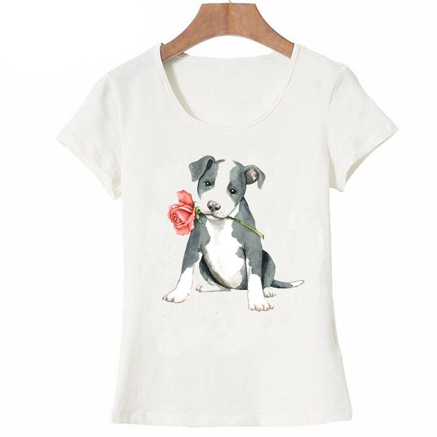 Naisten T-paita, jossa on koiran painatus