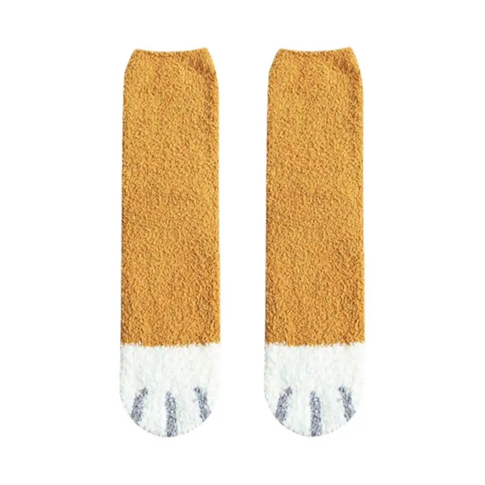 Naisten talvi lämpimät pörröiset yksiväriset sukat EU 36-42 koko pehmeä lämmittävä puuvilla polyesteri kissan tassu -kuvio mukavat kotisukat yksi pari