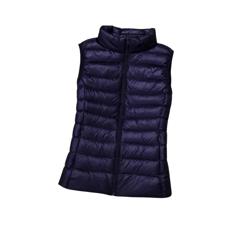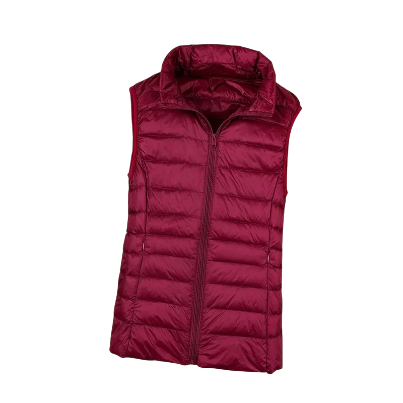 Naisten talviliivi korkealla kauluksella ja vetoketjulla Yksivärinen lämmittävä liivi kevyestä polyesteristä Tyylikäs talviliivi eri väreissä