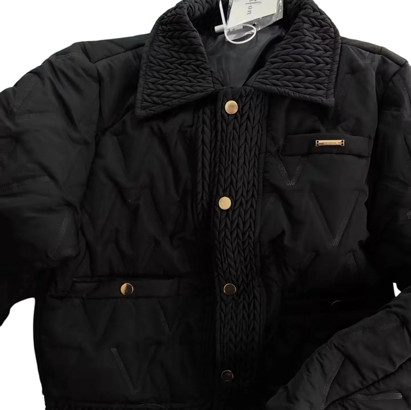 Tämä naisten talvitakki on loistava valinta naisille, jotka etsivät mukavuutta, tyyliä ja luotettavaa lämpöä talvipäivinä. Valmistettu laadukkaasta polyesteristä ja puuvillasta, se tarjoaa ihanteellisen yhdistelmän kestävyydestä ja mukavuudesta, joka takaa miellyttävän tunteen myös alhaisissa lämpötiloissa. Kaulus antaa takille elegantin ilmeen ja suojaa samalla kaulaa kylmältä. Pääasiallinen napitus neppareilla mahdollistaa nopean ja tukevan sulkemisen, joka suojaa sinua kylmältä ja tuulelta. Käytännölliset taskut tarjoavat riittävästi tilaa pienten tavaroiden säilyttämiseen tai käsien lämmittämiseen. Materiaalikoostumus varmistaa, että takki on mukava käyttää ja sopii päivittäiseen käyttöön, olipa sitten kaupungissa tai talvikävelyillä.