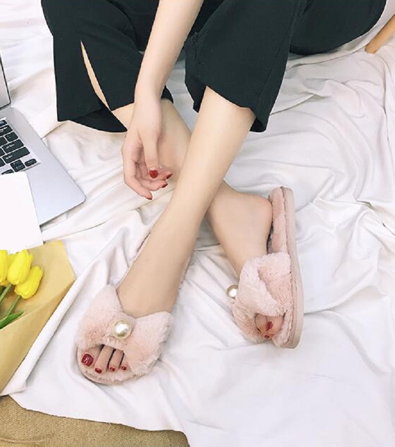 Nämä kauniit rusetilla ja helmillä koristellut tohvelit ovat todella söpöt.