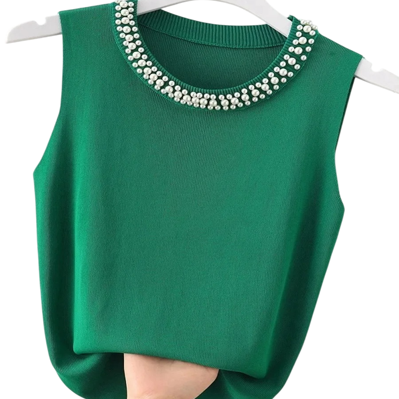 Tyylikäs naisten toppi hienoilla helmillä ja mukavalla leikkauksella, yksi koko, täydellinen arkeen ja juhlavampiin asuihin. Täydellinen kuvaus