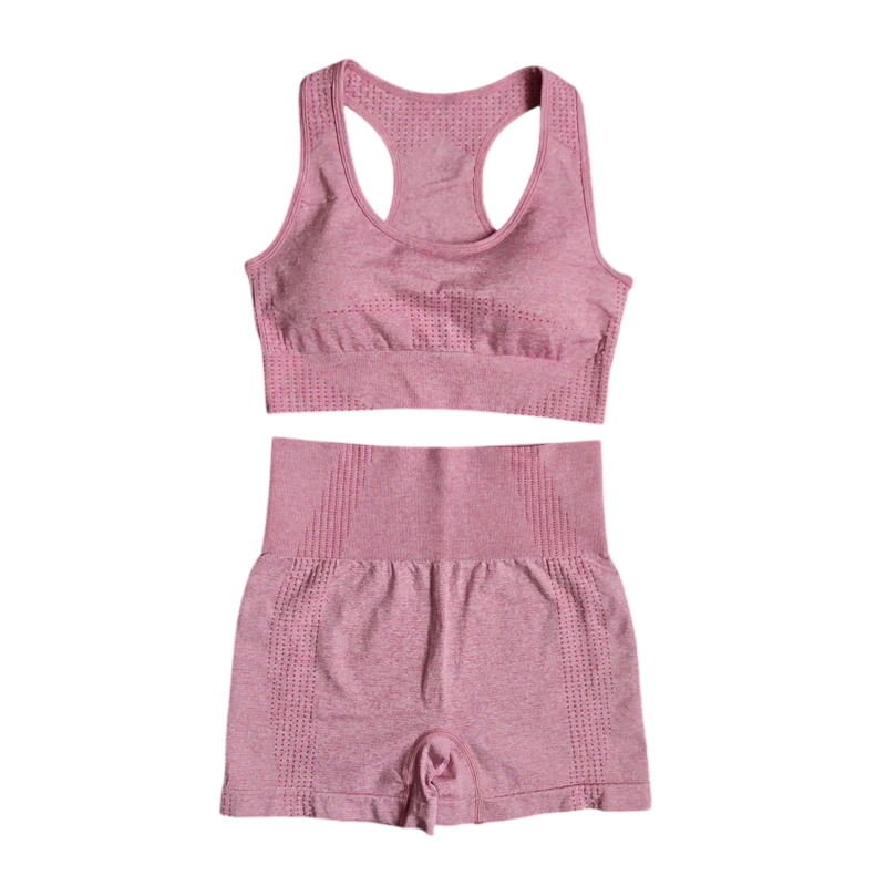 Tämä naisten urheiluasu on suunniteltu naisille, jotka etsivät kevyitä, mukavia ja toiminnallisia vaatteita aktiiviseen liikkumiseen lämpimillä päivillä. Setti, joka koostuu lyhyistä housuista ja urheiluliiveistä, tarjoaa ihanteellisen yhdistelmän mukavuutta, tukea ja modernia ilmettä. Käytetty materiaali yhdistää nailonia, polyesteriä ja spandeksiä, mikä takaa korkean joustavuuden, hengittävyyden ja miellyttävän tunteen käytössä. Yksivärinen toteutus näyttää puhtaalta, ajattomalta ja se on helppo yhdistää muihin urheiluvarusteisiin.