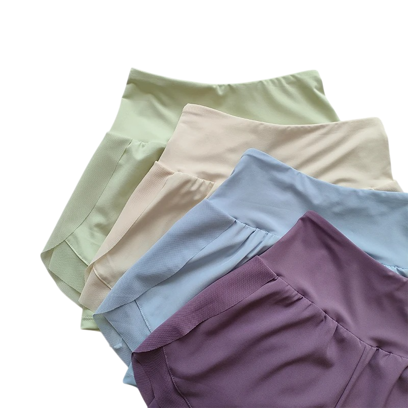 Naisten urheilushortsit on suunniteltu maksimaaliseen mukavuuteen ja suorituskykyyn kaikissa aktiviteeteissa. Kiitos materiaalien yhdistelmän nylon, polyesteri ja spandex, ne ovat kevyitä, joustavia ja mukautuvat kehon liikkeisiin ilman rajoituksia. Korkea vyötärö tarjoaa tukea vatsan alueella ja muotoilee samalla vartaloa imartelevasti. Yksivärinen muotoilu näyttää modernilta ja on helppo yhdistää urheiluliivin, topin tai hupparin kanssa.