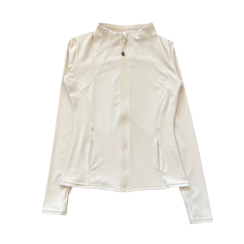 Naisten urheilutakki pystykauluksella Vartalonmyötäinen istuvuus Nopeasti kuivuva hengittävä materiaali Peukalonreikä Sisällä puhelintasku
