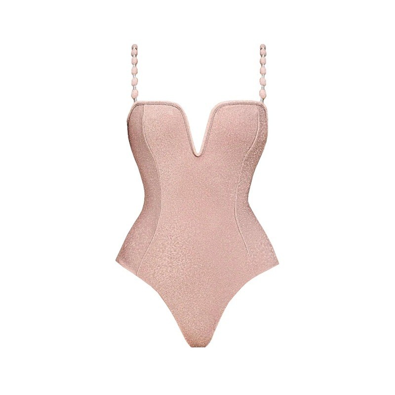Naisten vaaleanpunaiset yksiosaiset uimapuvut Yksivärinen Muotoilu V-mallinen kaula-aukko Ohut olkaimet Polyesteri Spandex Joustavat Kesäiset ranta-uimapuvut