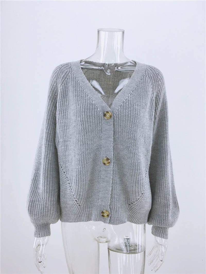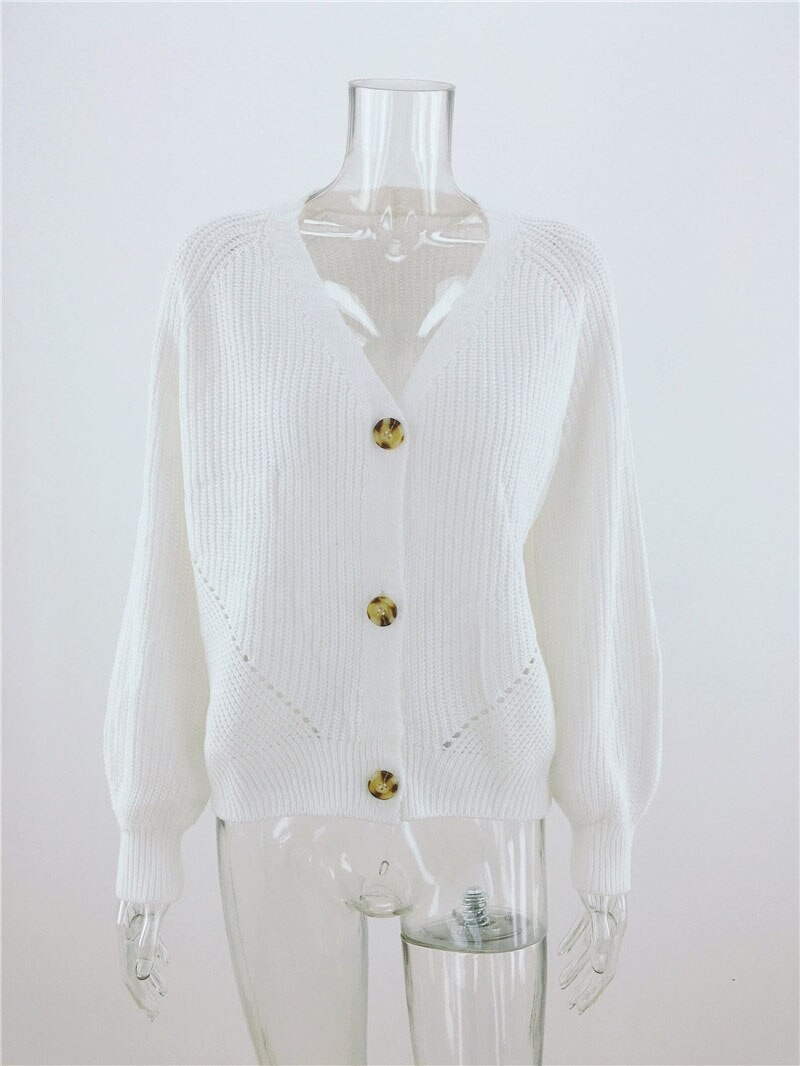 Naisten väljä neulepusero napeilla