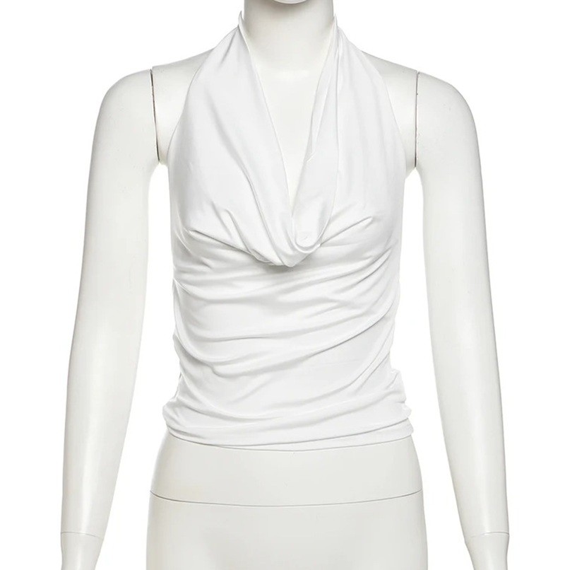 Tyylikäs naisten toppi crop-mallissa, jossa korostuu pääntie, joustava materiaali, täydellinen kesään, vapaa-aikaan, urheiluun ja kaupunkiasusteisiin. Täydellinen kuvaus