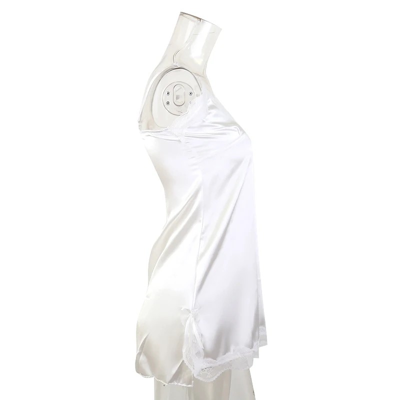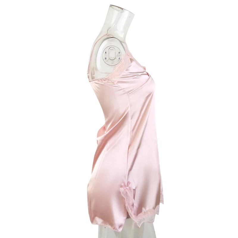 Etusivu Etusivu Vaatteet ja asusteet Naisten vaatteet Naisten yöpukeutuminen Naisten yöpaidat Naisten yömekko pitsillä ja halkiolla Elegantti yksivärinen mekko V-pääntiellä Kevyt polyesteri Hienostunut yömuoti Eri värejä