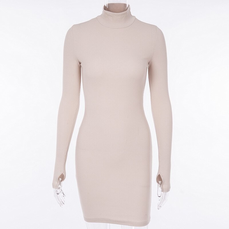 Yksinkertainen leikkaus, pitkät hihat ja pystykaulus.