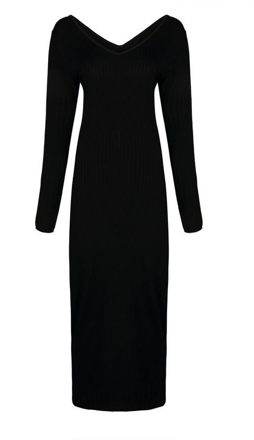 Kaunis syksyinen neulemekko pitkähihaisilla hihoilla.