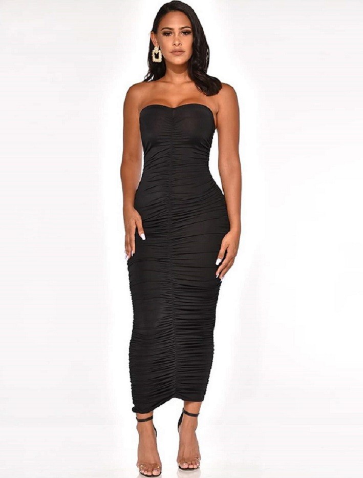 Olkaimeton joustava midi-mekko