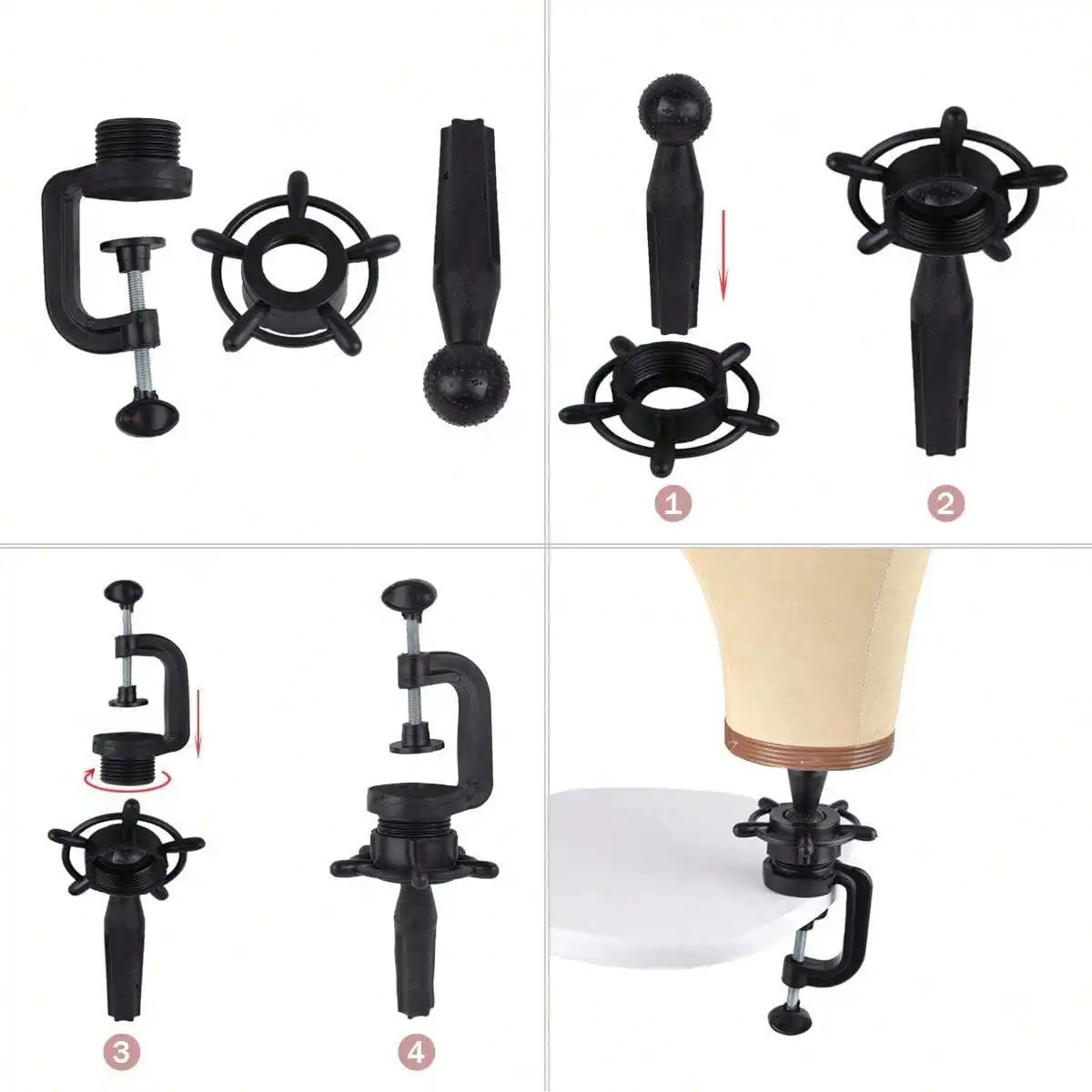 Päähineiden teline pöytäkiinnityksellä, pään ympärys 55,88 cm. Ihanteellinen kampaamoille ja kotikäyttöön. Erittäin laadukas kangas. Täydellinen kuvaus