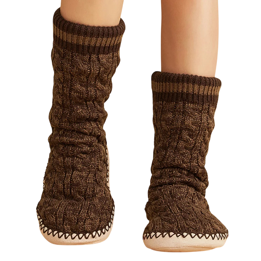 • Tohveleiden ja sukkien yhdistelmä – mukava istuvuus, joka pysyy jalassa