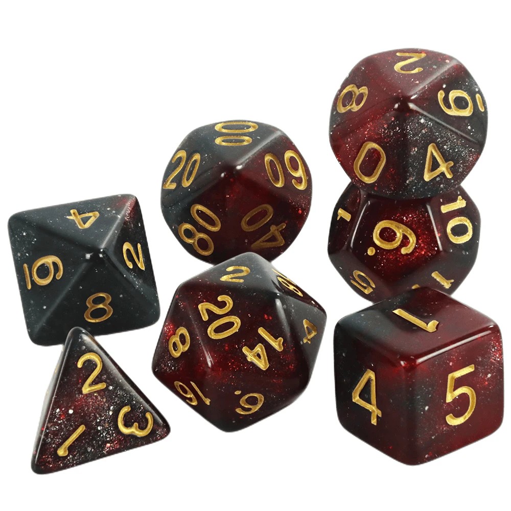 Monikulmaiset nopat kuuluvat oleellisiin elementteihin roolipeleissä, joissa sattuma päättää tarinan kulusta, taisteluista ja hahmojen keskeisistä päätöksistä. Tämä setti tarjoaa täydellisen yhdistelmän nopista, joita tarvitaan tavallisissa pelimekanismeissa ja se sopii sekä kotipelaamiseen että pelikerhoihin.