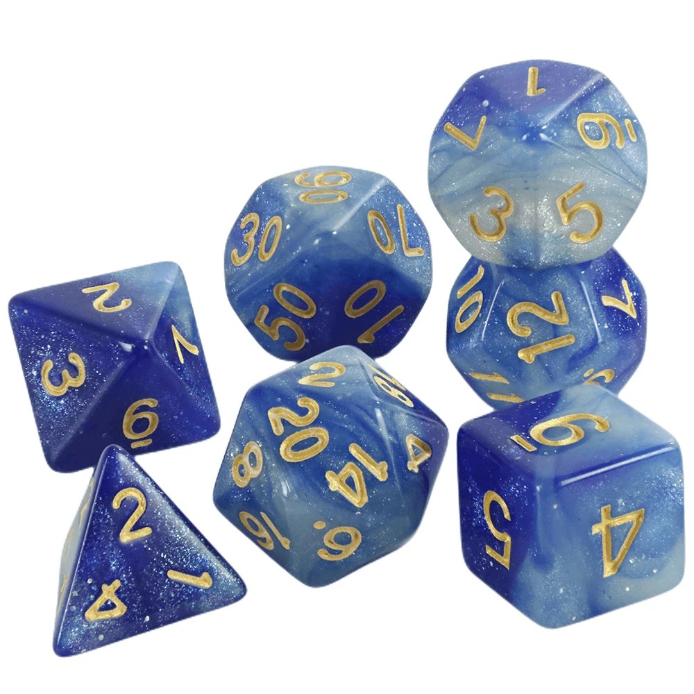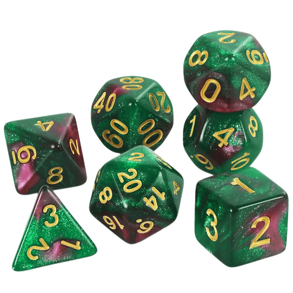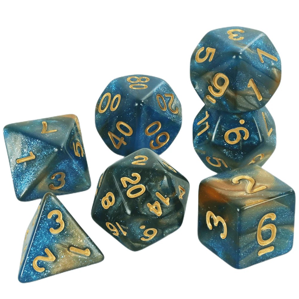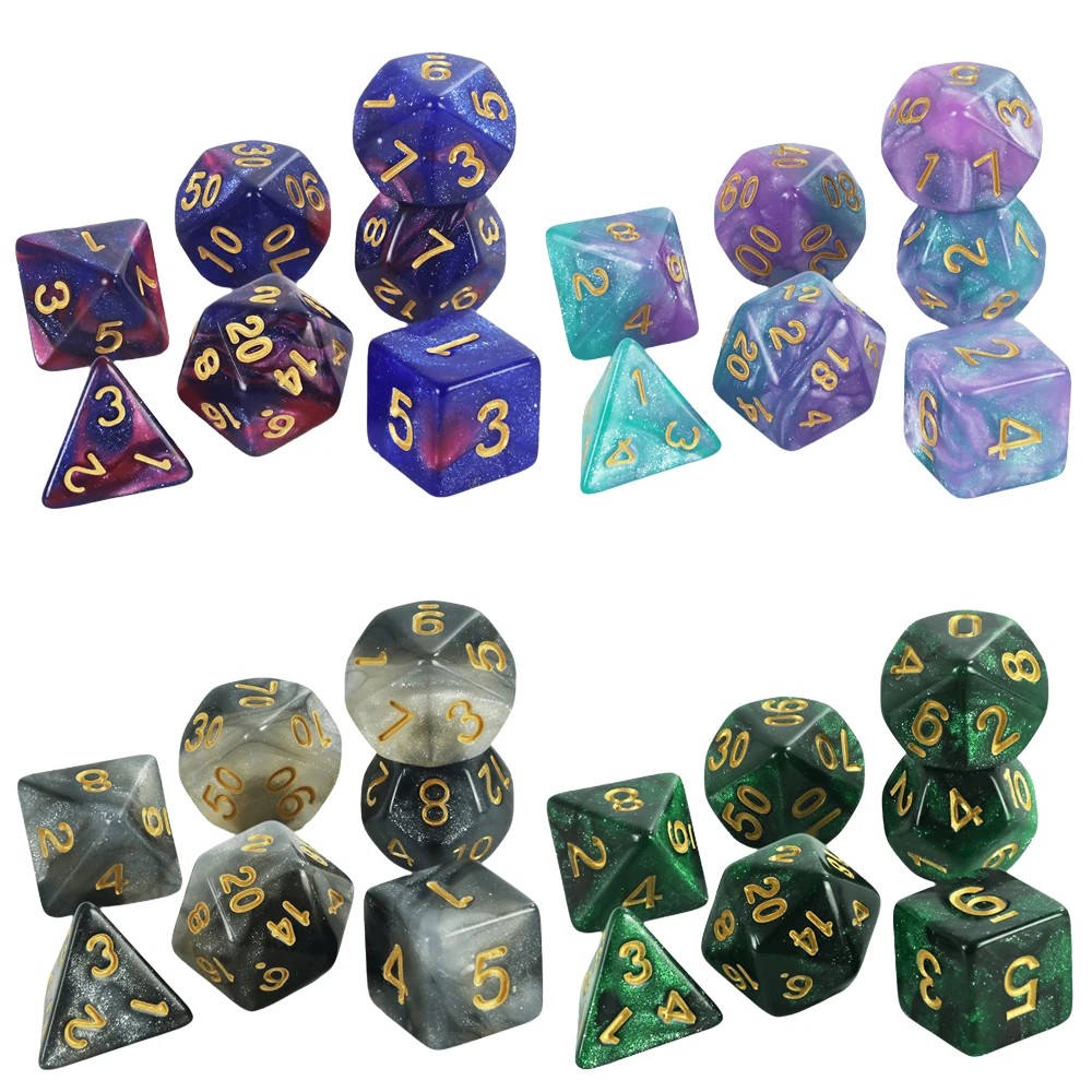 Pelaamisen nopat 7 kpl monikulmaiset RPG nopat Galaksi tyyli Monivärinen fantasia setti pöytäpeleihin Lohikäärme luola roolipeli