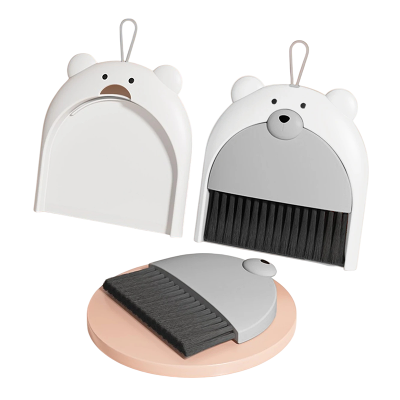 Käytännöllinen muovinen pöytälapio, jossa on piirretty karhu -kuvio, mitat 20×16×16×5 cm, ihanteellinen pieniin kotisiivouksiin, kokoontaitettava rakenne. Täydellinen kuvaus