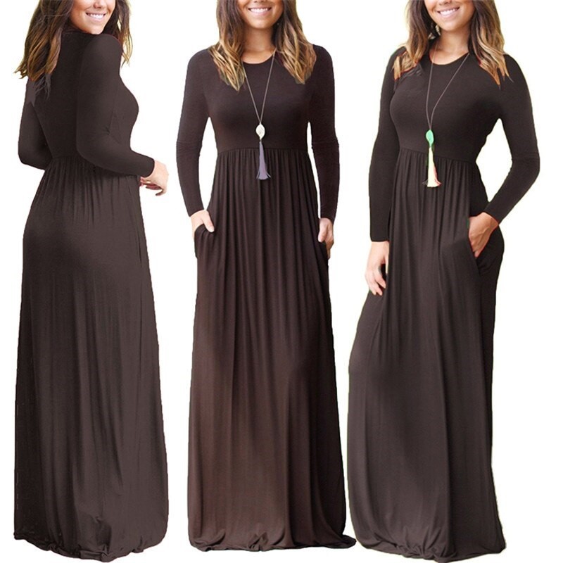 Mukava naisten mekko, jossa pitkät hihat.